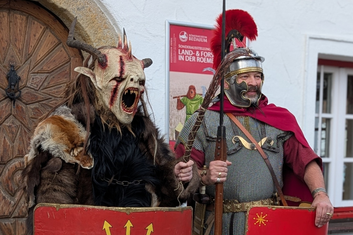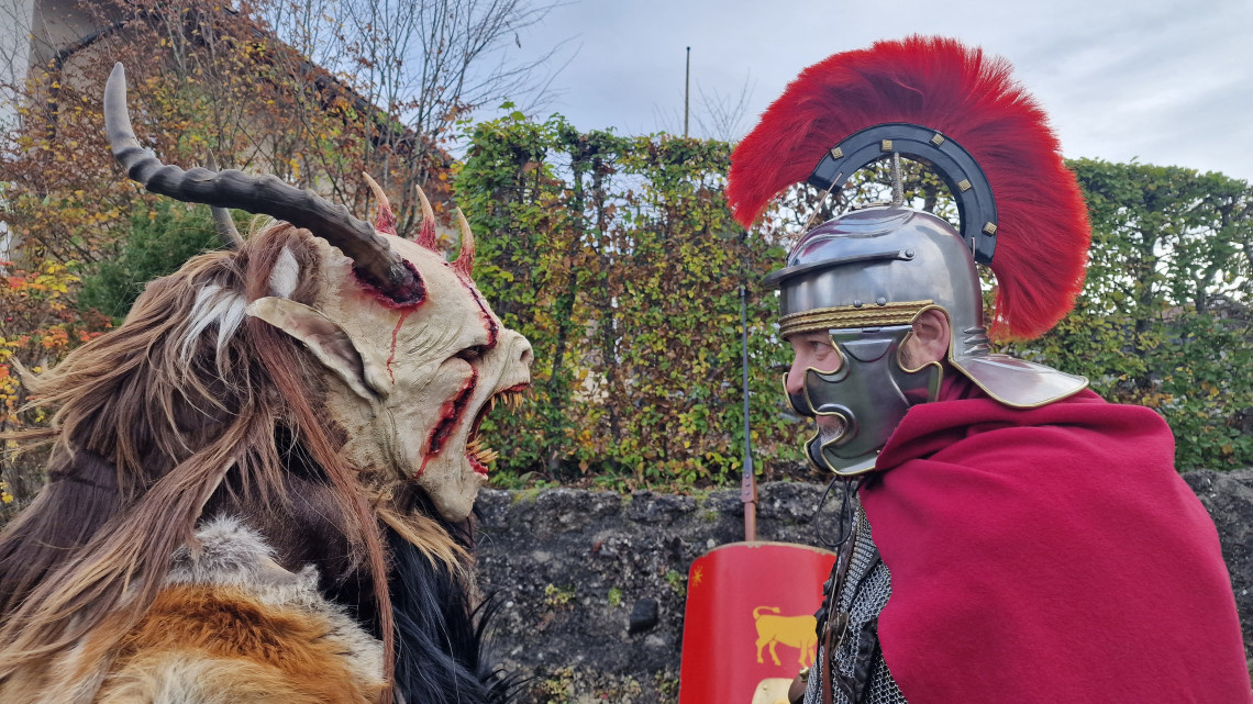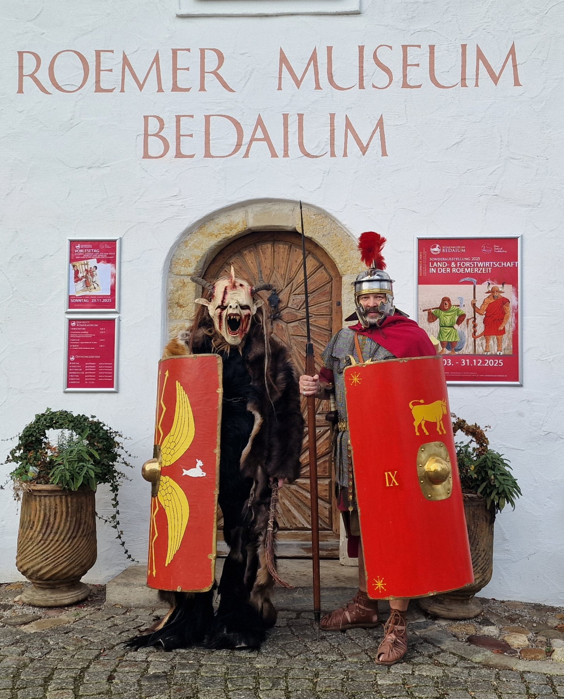 Die Geschichte mit dem Kramperl am Römermuseum ging übrigens gut aus. Legionär Quintus Tiberius Octavius konnte den wilden Kerl davon überzeugen sich der römischen Armee, sprich der LEGIO IX HISPANA anzuschließen. Starke Auxilliarsoldaten konnte das Imperium immer brauchen.