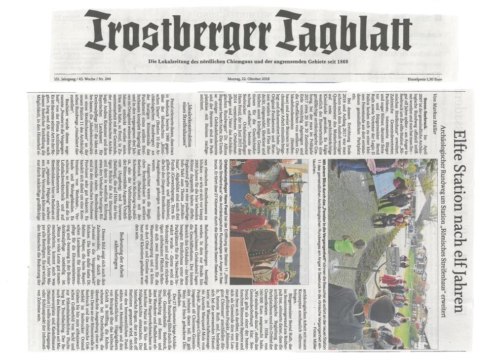 Am 19. Oktober 2018 wurde die Station 11 des Archäologischen Rundwegs eröffnet - auch die Zeitung berichtete: