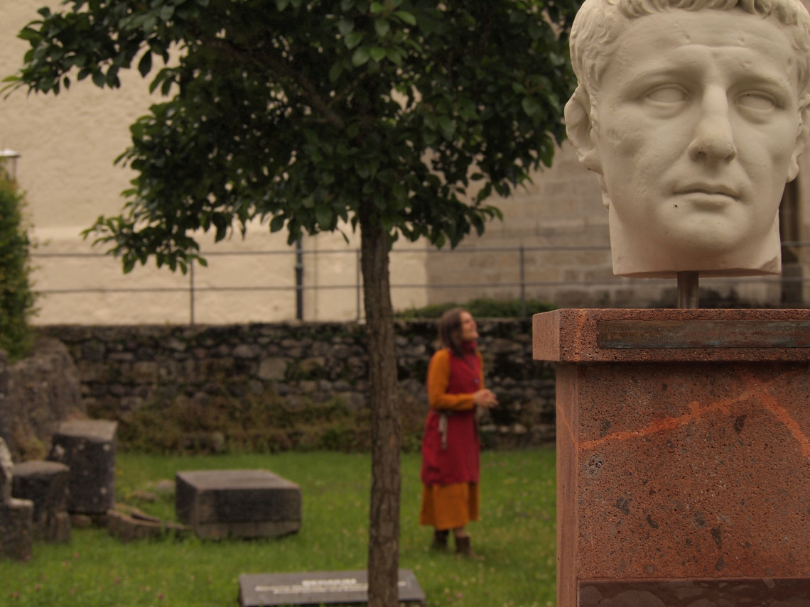 Römermuseum, Museumsvorplatz mit Tempel- und Kastellmauer