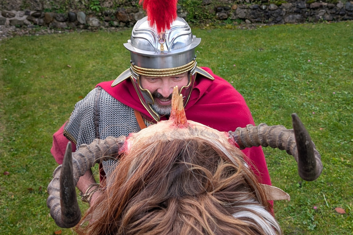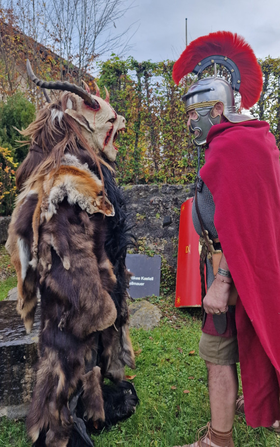 Die Geschichte mit dem Kramperl am Römermuseum ging übrigens gut aus. Legionär Quintus Tiberius Octavius konnte den wilden Kerl davon überzeugen sich der römischen Armee, sprich der LEGIO IX HISPANA anzuschließen. Starke Auxilliarsoldaten konnte das Imperium immer brauchen.